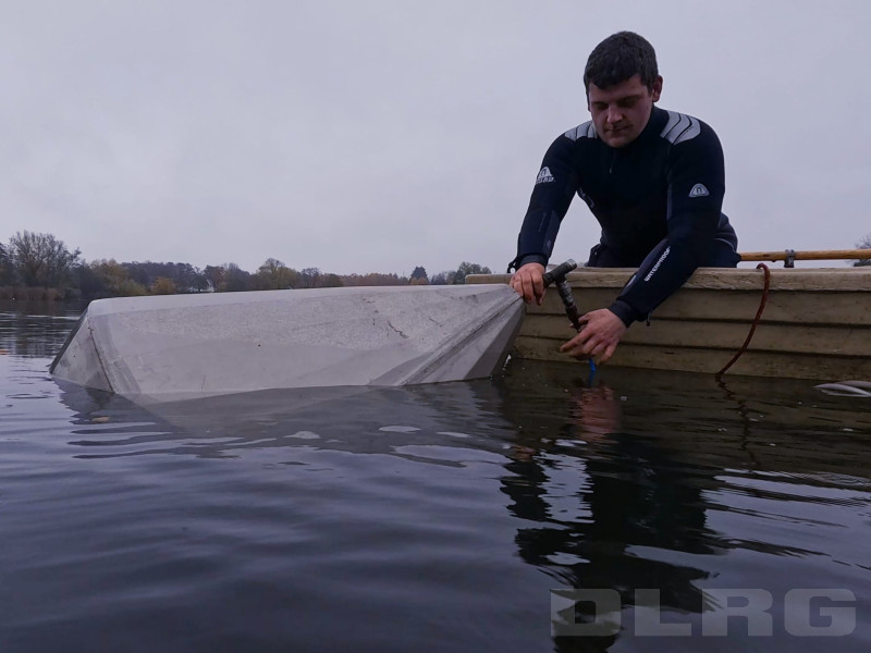 Wie jedes Jahr haben die Taucher der Ortsgruppe die Fontäne am Erlenhofsee winterfest gemacht. Um Schäden durch Frost zu vermeiden, wurde die Fontäne im See abgelassen. Mit einem Schlauchboot machten sich die Taucher auf den Weg zur Fontäne, um die notwendigen Arbeiten durchzuführen. Diese wichtige Aufgabe wird stets vor Beginn des Winters erledigt, damit die Fontäne gut durch die kalte Jahreszeit kommt und keine weiteren Beschädigungen entstehen. So tragen die Taucher dazu bei, dass die Fontäne auch im kommenden Jahr wieder in Betrieb genommen werden kann.